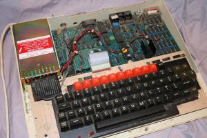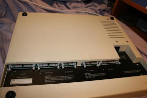 A bit dusty inside, but I’ve seen worse (any modern computer with a fan that sits on the floor springs to mind).  The wires sneaking out the back were a dodgy pass through for the speaker so I could hook it up to an external speaker for more audio goodness.