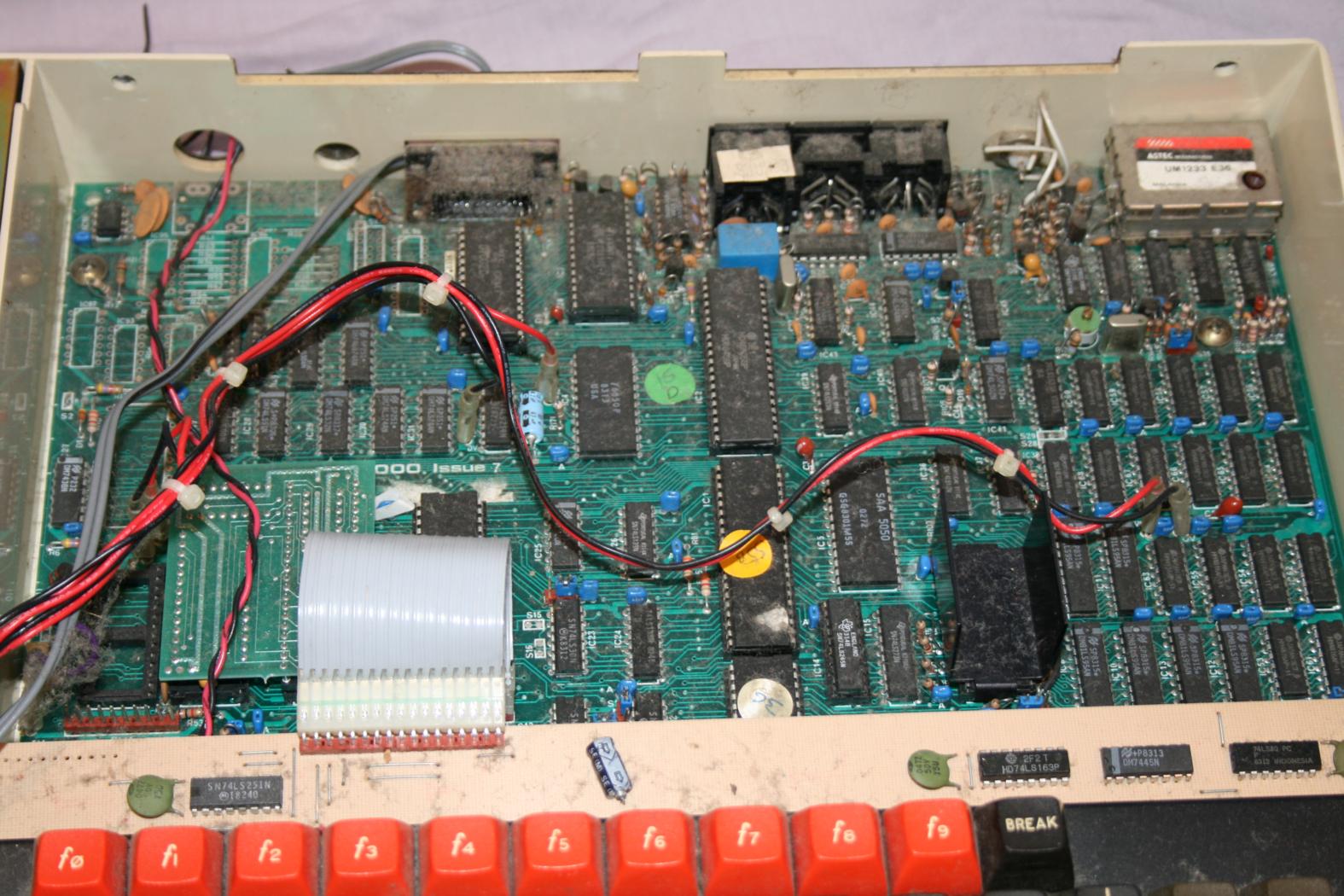 Pretty standard really.  Just above the keyboard ribbon cable you can see the text ‘Issue 7’.  This may have been the last revision of the BBC Model B main board.  I’m not sure, but it does seem the most common.