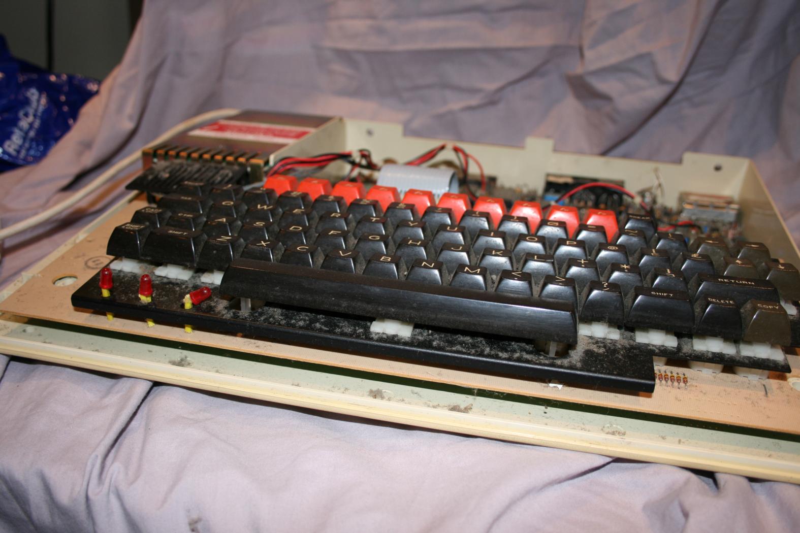 I unsoldered my dodgy speaker cable and fixed it back to the original configuration.  After realigning the LED at the front and cleaning up the function key strip (the clear plastic above the keyboard allowed you to slip in dedicated function key templates above the red function keys that explained what they did depending on the program you were using)